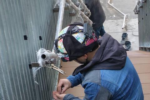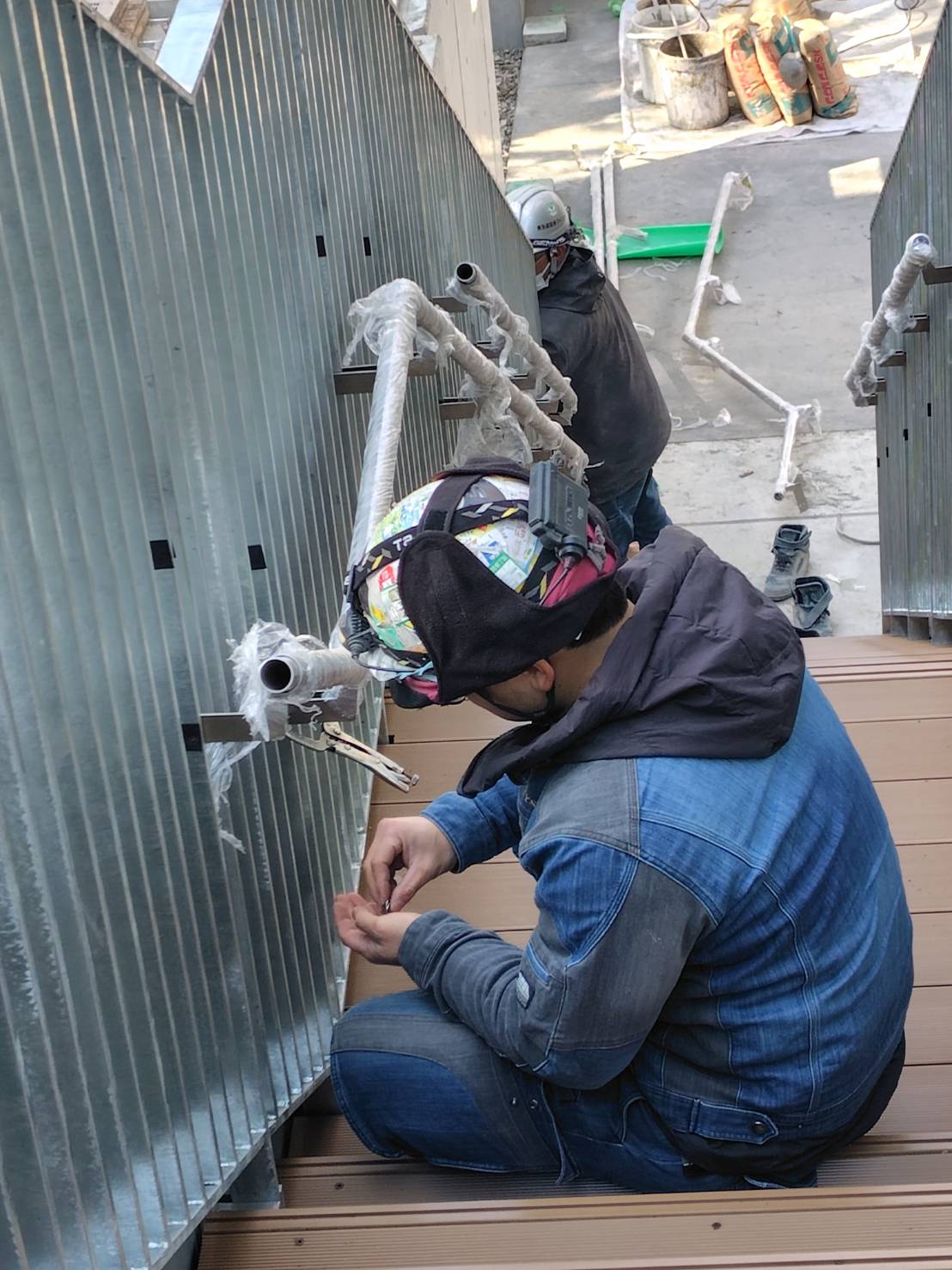 This job involves installing metal products such as handrails and panels at construction sites.