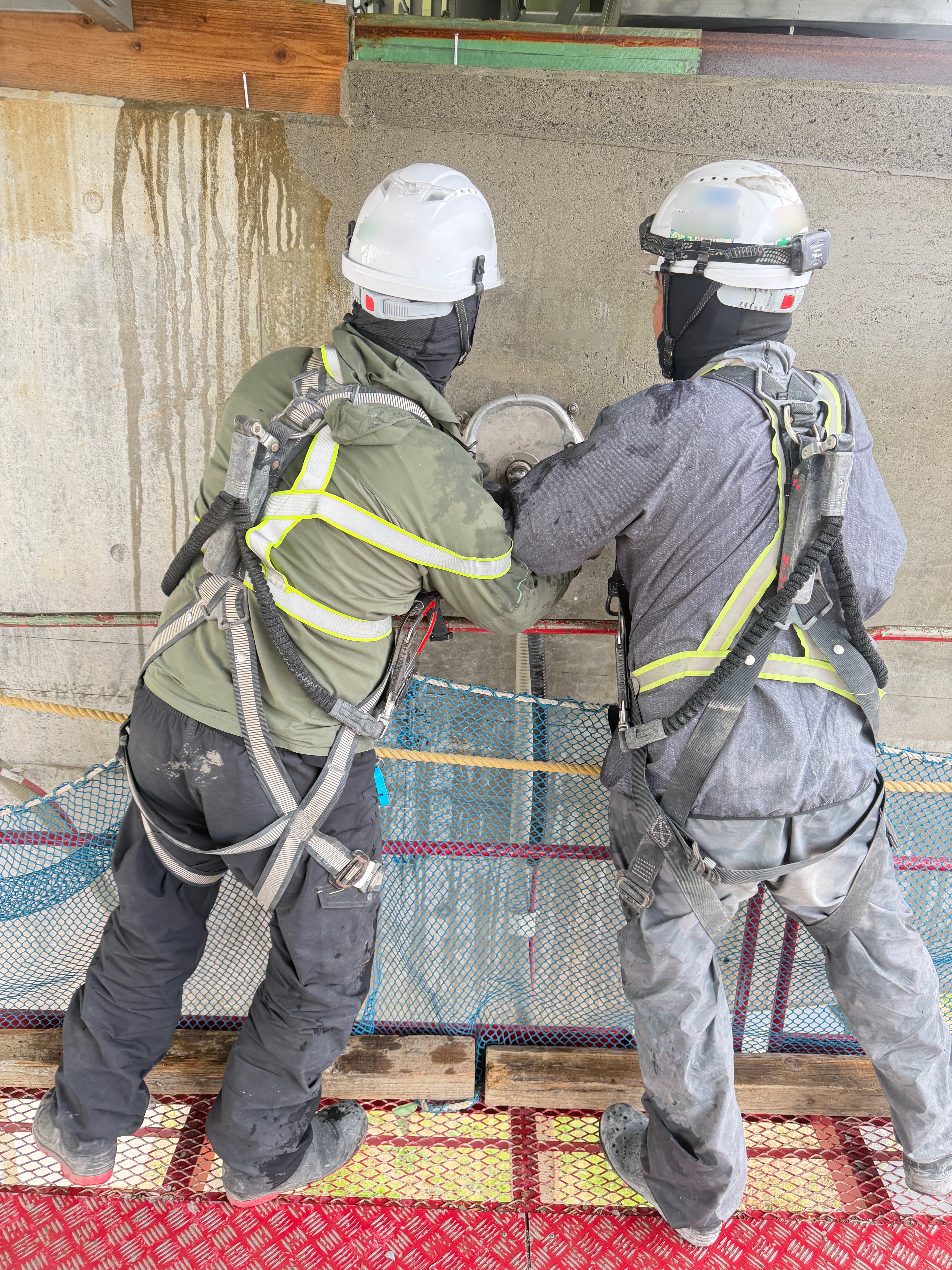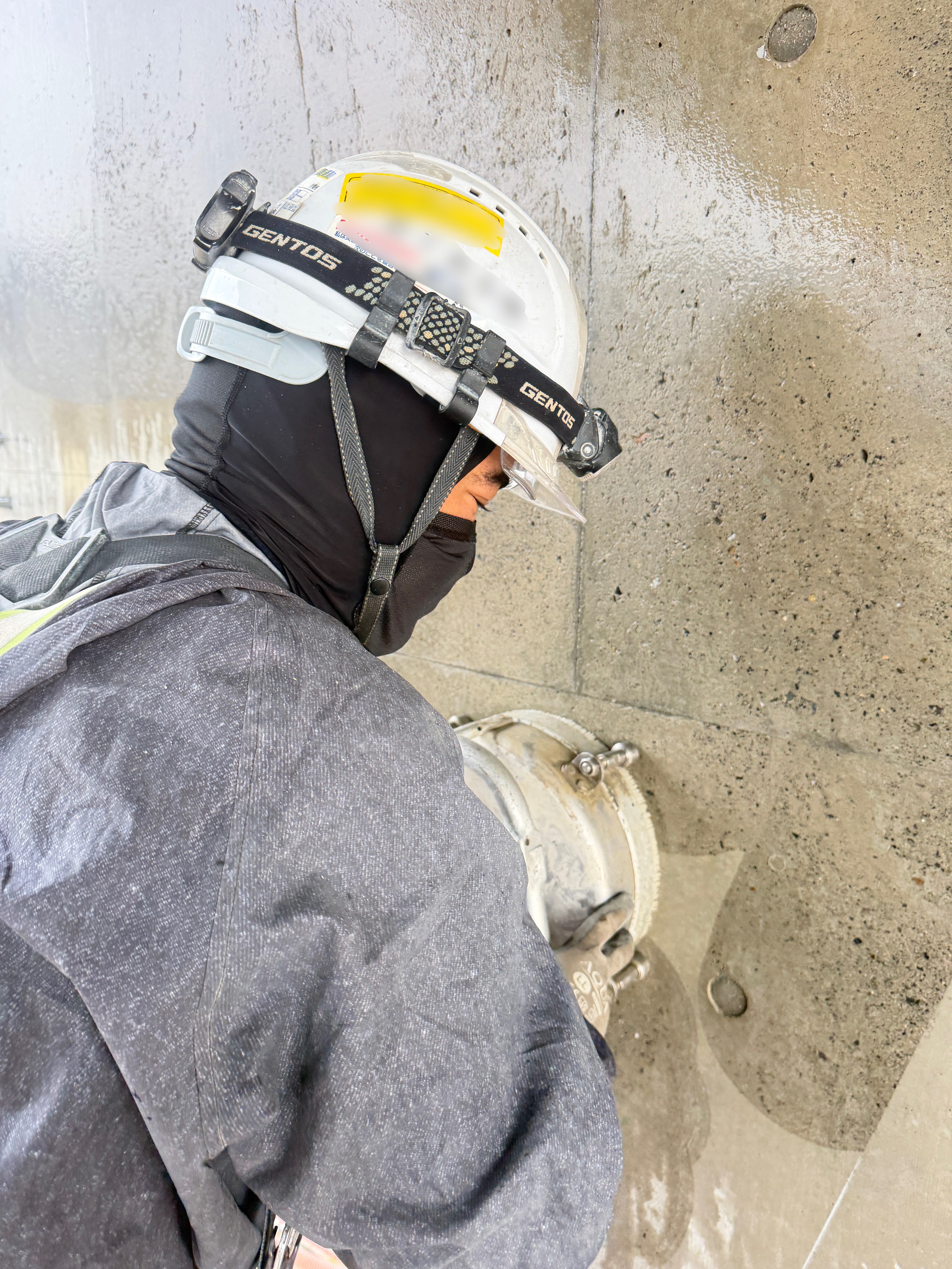 This is water jet work at construction sites (using high-pressure water to remove concrete).