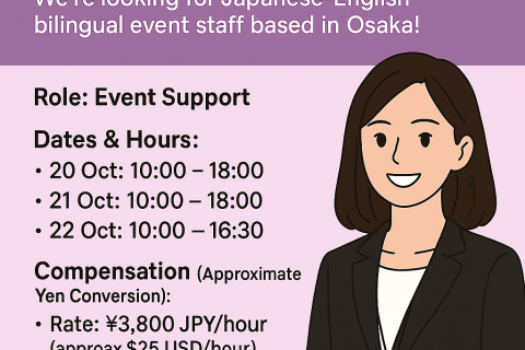Tìm ứng viên song ngữ Nhật–Anh, sinh sống tại Osaka!
