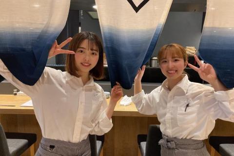 Cooking and customer service work at a tempura shop in Shibuya Parco.